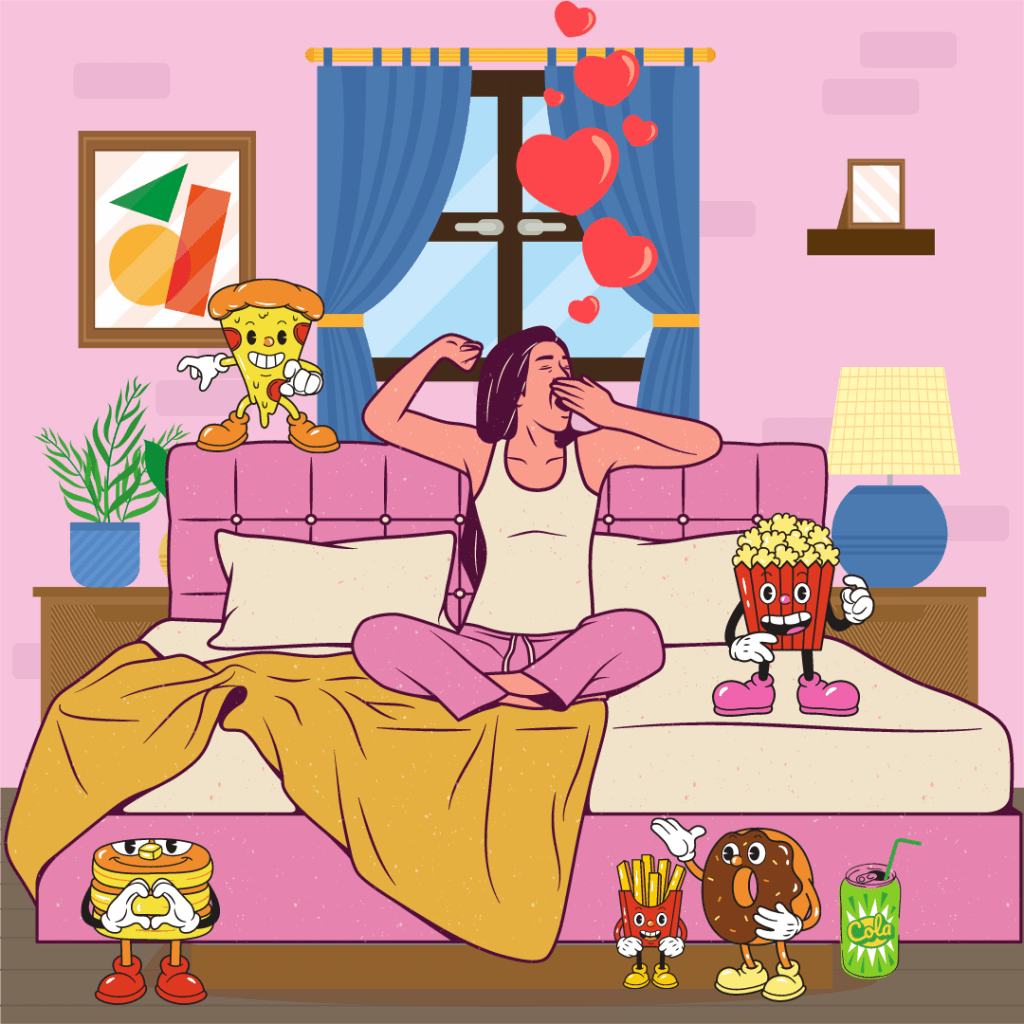 Life is not your job right now! Bad moods beget bad moods, and you’re not here to make anyone else’s day better. You’ve been doing it all day long, plus, you’re off the clock. Instead, you leave a trail of junk food from the kitchen to your room—someone can fix it later,.